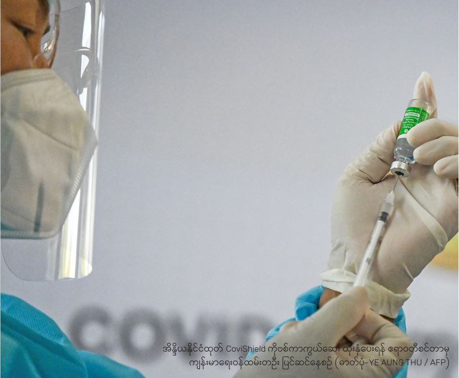 မြန်မာနိုင်ငံက အခုအချိန်မှာ လူပေါင်း ၁ ဒသမ ၇ သန်းကို ကာကွယ်ဆေး ထိုးနှံ ပြီး (စုစုပေါင်း လူဦးရေရဲ့ ၃ ဒသမ ၂ ရာခိုင်နှုန်း) လို့ ဖော်ပြကြပါတယ်။ (နှစ်ကြိမ် ထိုးနှံပြီးလို့ ယူဆနိုင်ပါတယ်)။ အခြားသတင်းများအရ မြန်မာနိုင်ငံ မြောက်ပိုင်း တရုတ်နယ်စပ်ရှိ တိုင်းရင်းသားလက်နက်ကိုင်အဖွဲ့ (EAOs) နယ်မြေတွေမှာ ကိုယ်ပိုင်အစီအစဉ်နဲ့ ကာကွယ်ဆေး ထိုးနှံနေ တယ်လို့ ဖော်ပြကြပါတယ်။